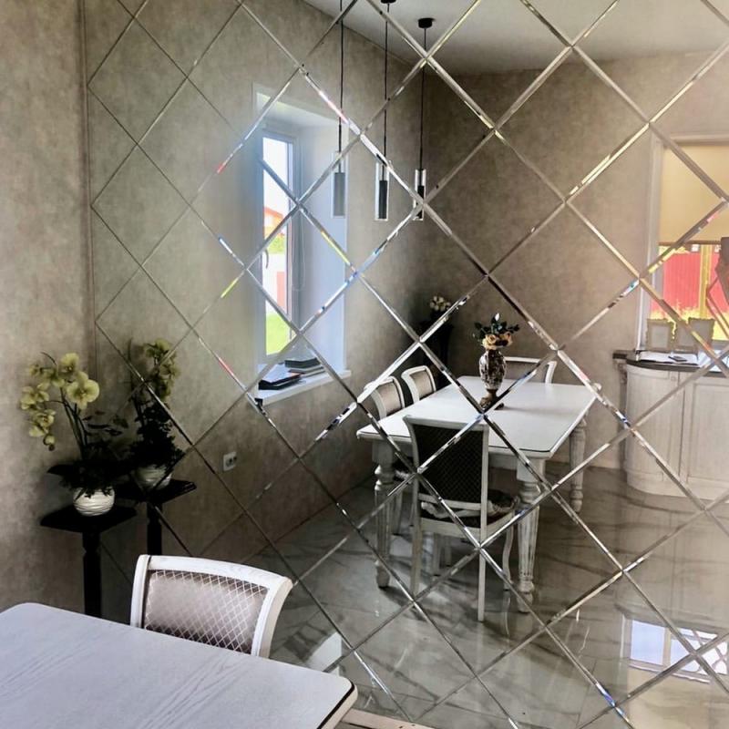Использована зеркальная плитка "вытянутый ромб" с фацетом.