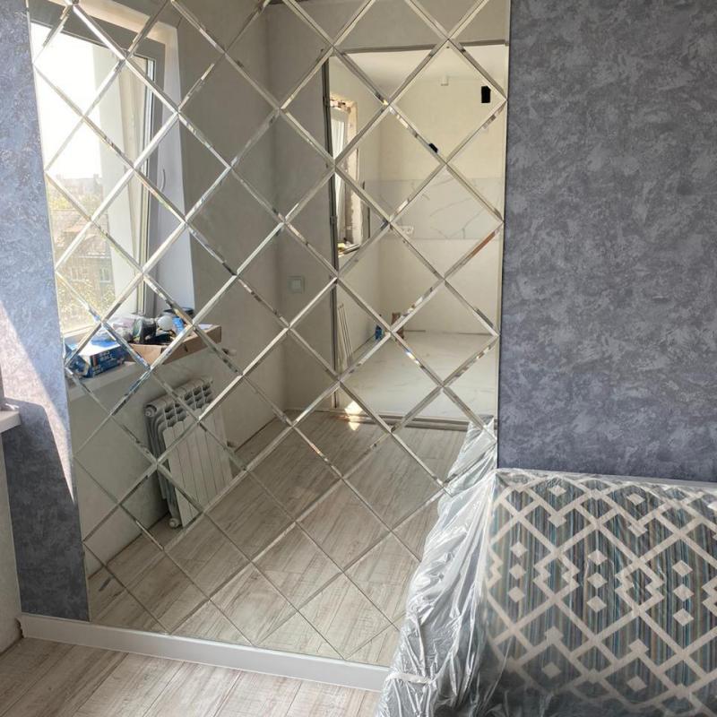 Использована зеркальная плитка "вытянутый ромб" с фацетом.
