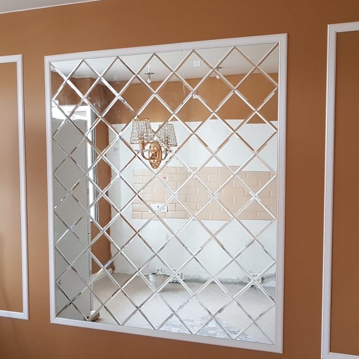 Использована зеркальная квадратная плитка с фацетом.